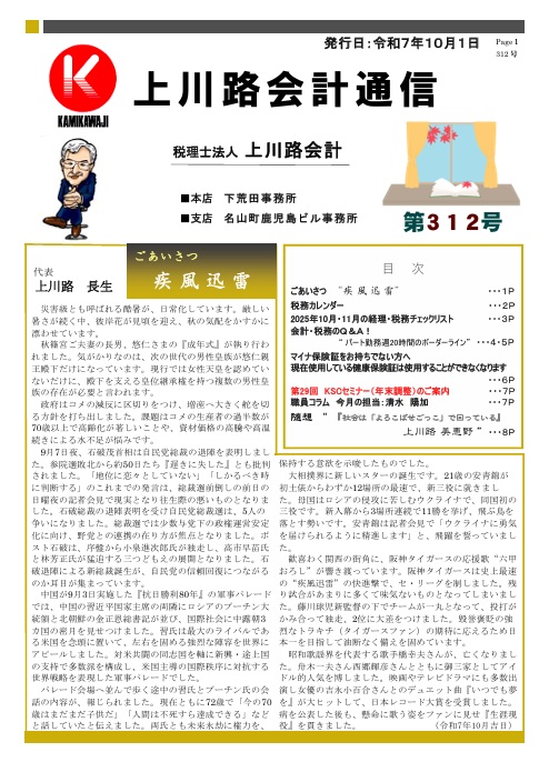 上川路会計通信 第312号 令和7年10月発行